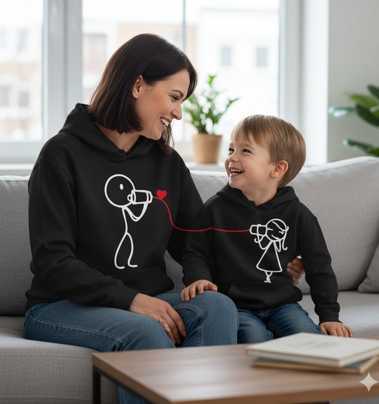 Condividi il tuo stile con chi ami di più. Morbide felpe coordinate per un legame unico e indimenticabile.
